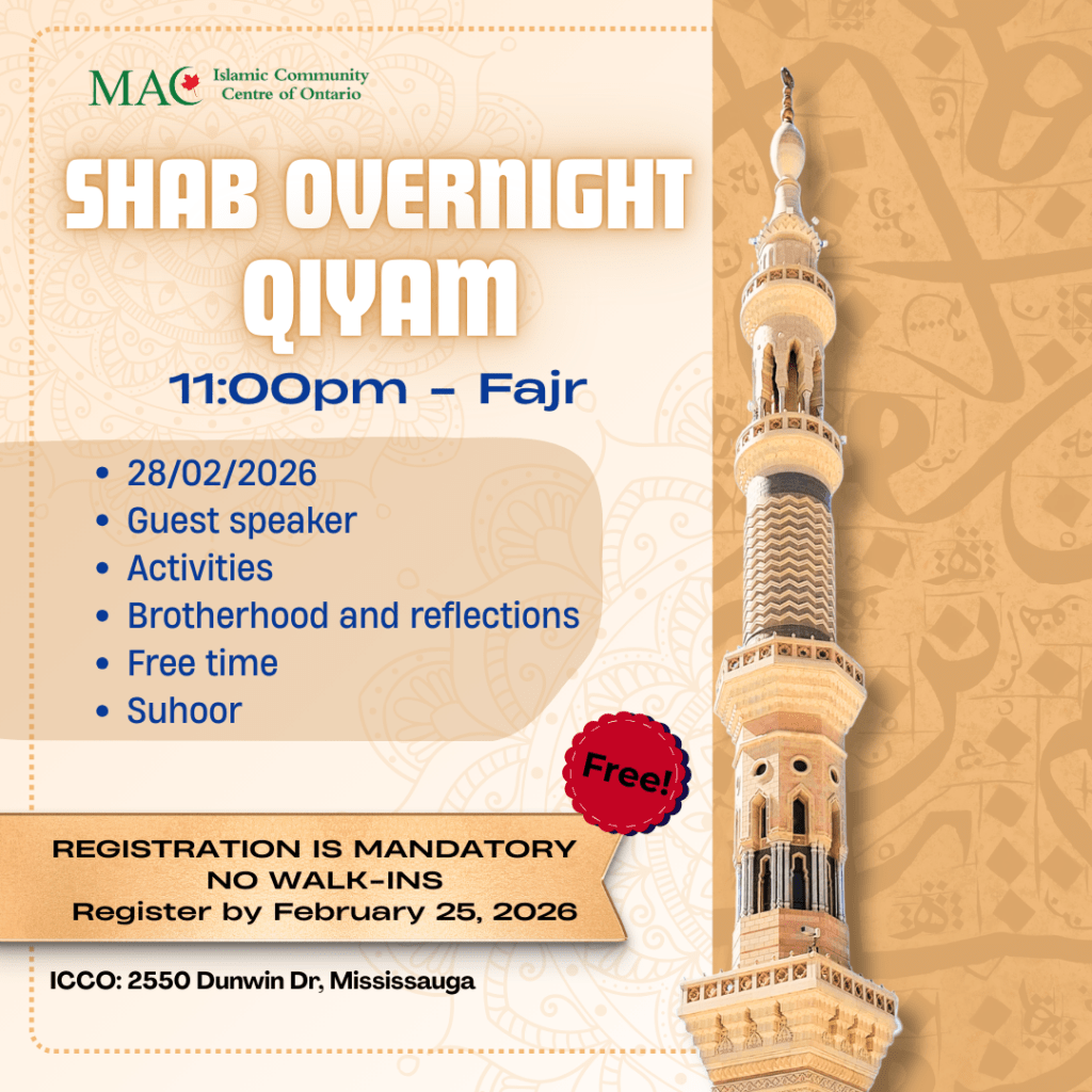 🌙 SHAB Overnight Qiyam High school brothers! We’re gathering on February 28, 2026 at the Islamic Community Centre of Ontario (ICCO) for an overnight qiyam focused on worship and brotherhood! […]