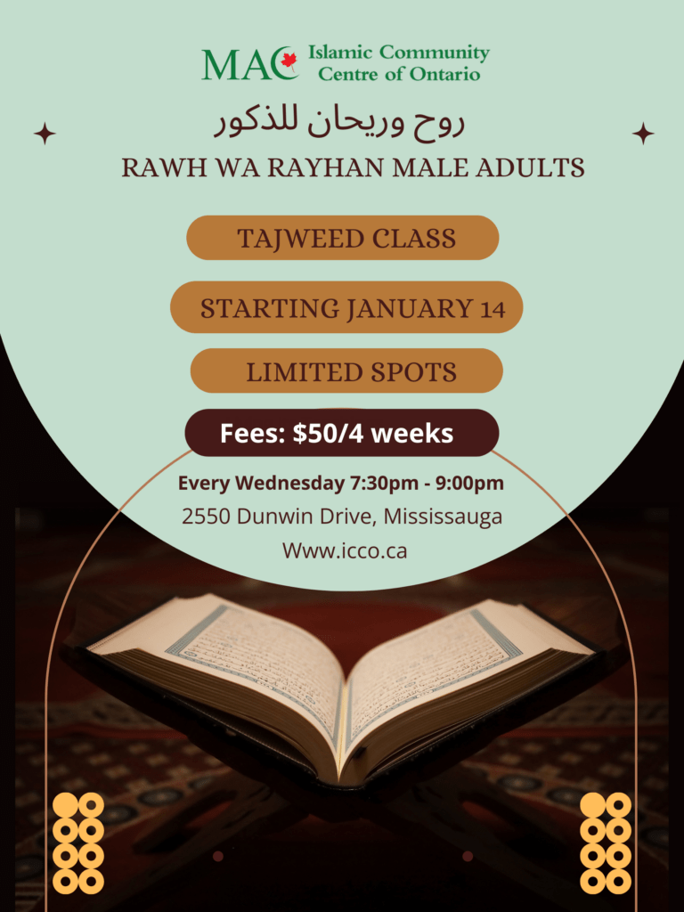 Rawḥ wa Rayḥān – Tajweed Course for Brothers (18+)Strengthen your bond with the Qur’an and refine your recitation with confidence and clarity Rawḥ wa Rayḥān is an advanced Tajweed and