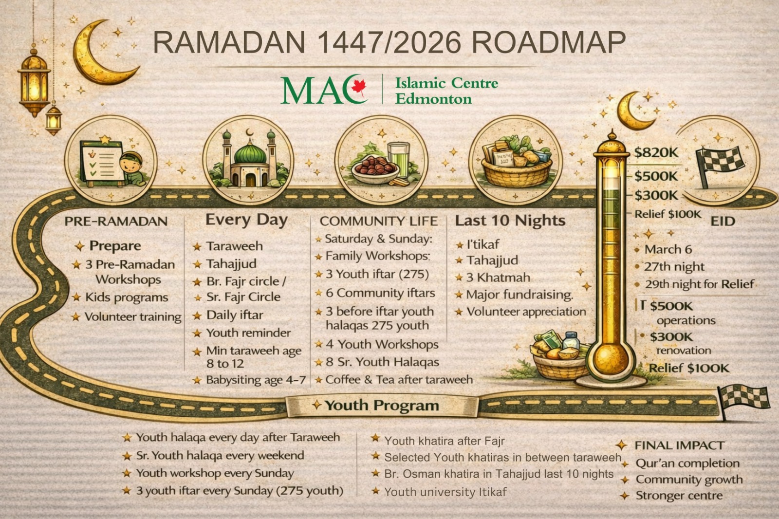 We’re excited to share the blessings of Ramadan with you! This sacred month is a time for reflection, connection, and spiritual growth, and we have many meaningful experiences planned for you, in shā’ Allāh.